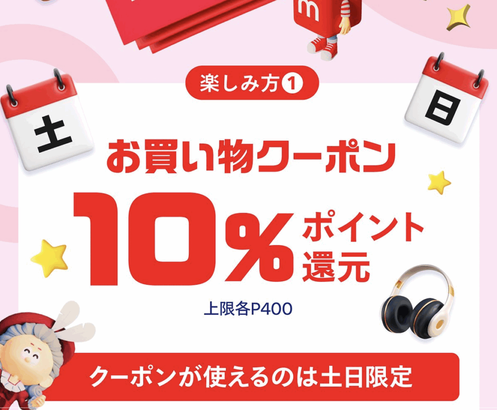 • 10%還元クーポンが使える