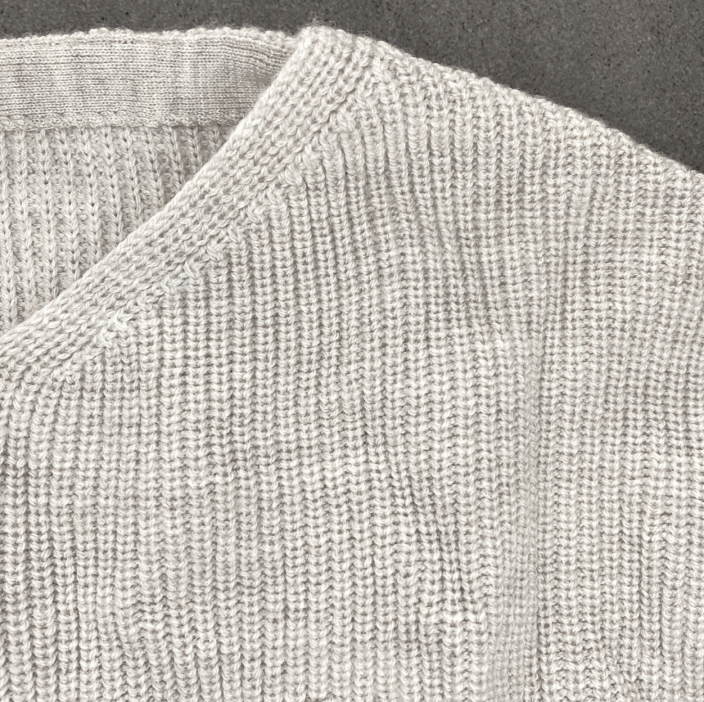 🤍 4️⃣ オフホワイトのゆるふわ Vネックニット