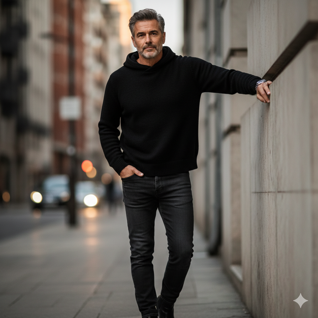 そしてスラックスやブラックデニム、足元の靴でバランスを取れば、「大人でもパーカーはあり!」と胸を張って言えるスタイルが完成します✨
