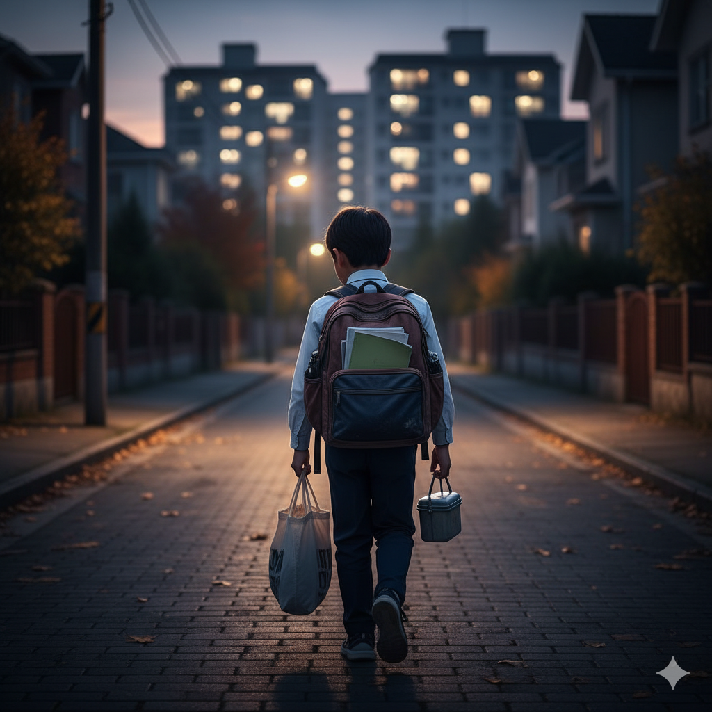 ランドセルを置いたと思ったら、学校の宿題をやり、その後すぐに塾バッグを持って出かけます。