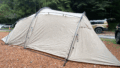 「よし、そろそろ片付けようか〜」って言いながら、昨日の雨でびしょ濡れになったテントを撤収開始💦