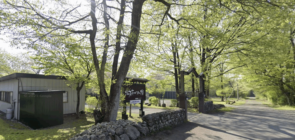 家畜用?のトウモロコシ畑を向けたところにある「あかつきの湯」