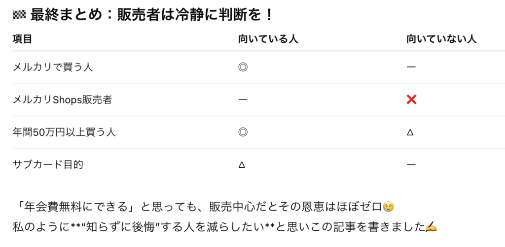 🧠 ここで一旦整理!メルカードゴールドの向き・不向き
