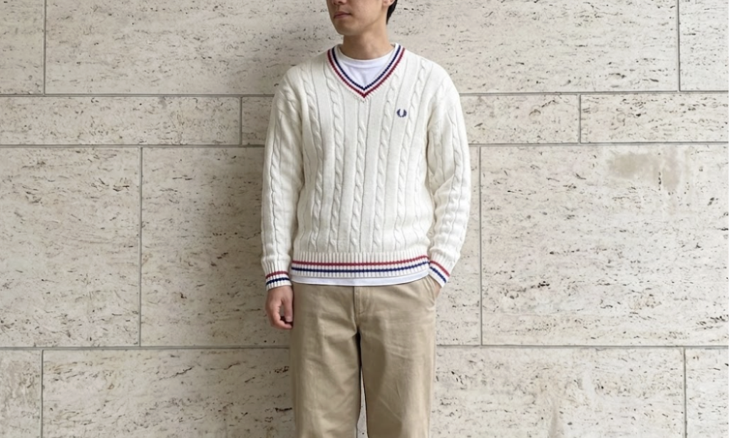 いつの時代も愛されるFRED PERRYのチルデンニット。 古着との出会いは一期一会です。