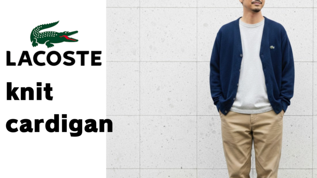 本日の一着 LACOSTE ✖️ knit cardigan IZOD LACOSTE(ラコステ)のUSA製カーディガン古着。深みのあるネイビーカラーとワニロゴが魅力。XLサイズで今っぽく着られる、大人向けの名作アイテム。 2026.01.24 本日の一着