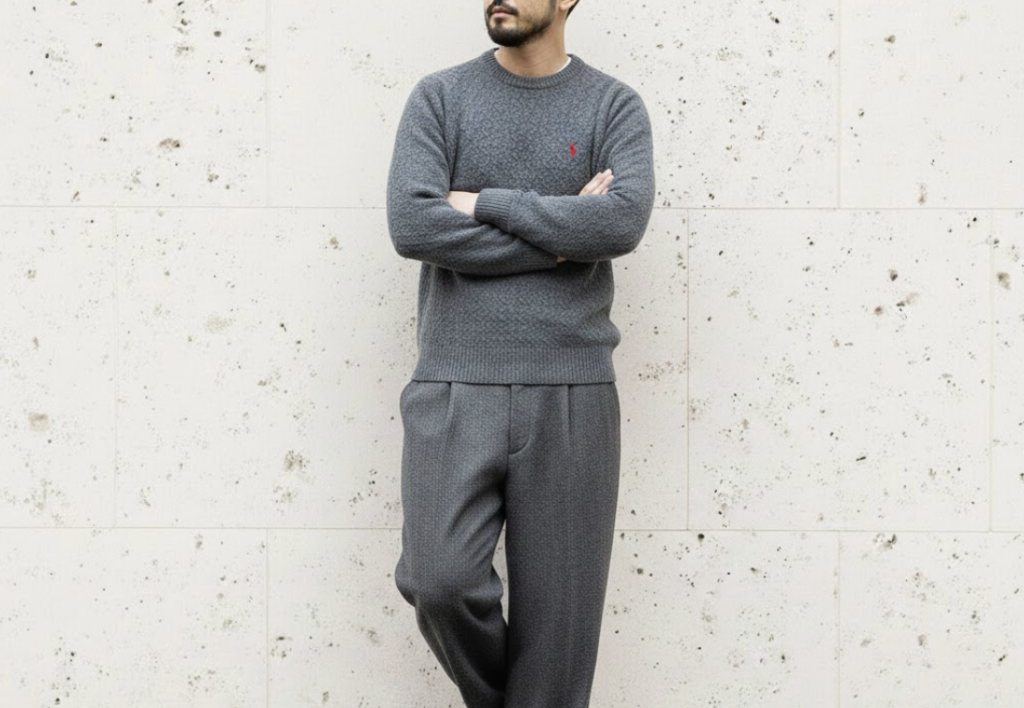 👉 ケーブル編み×シャツは間違いない組み合わせ🧣
